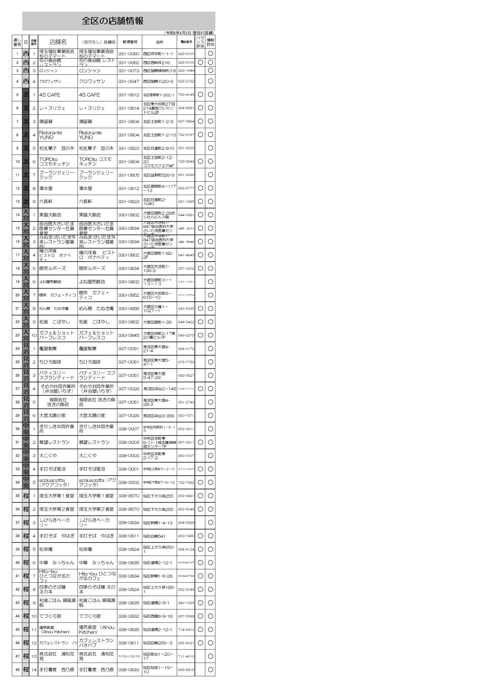 リソース名【さいたま市】店舗情報(西区,北区,大宮区,見沼区,中央区,桜区)